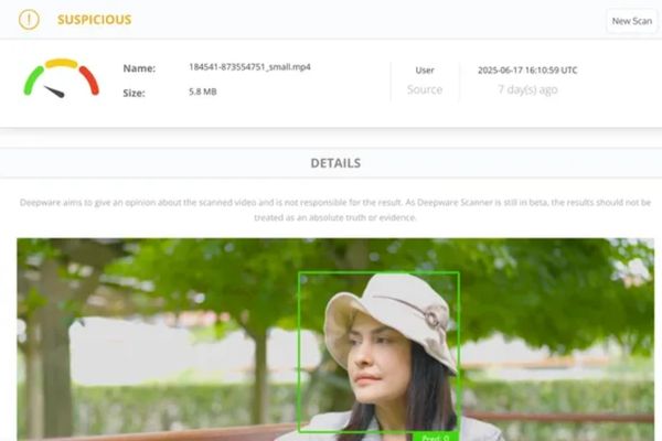Deepware là công cụ miễn phí giúp phân tích video và cảnh báo nếu phát hiện dấu hiệu giả mạo. Bạn chỉ cần tải video lên hoặc dán URL để nhận kết quả ngay lập tức.
