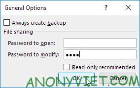 Lưu ý: Nếu bạn chỉ muốn khuyến nghị người dùng mở file ở dạng chỉ đọc mà không bảo vệ bằng mật khẩu, hãy chọn tùy chọn Read-only recommended.
