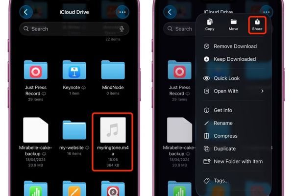 Giờ đây, bạn có thể sử dụng bất kỳ file âm thanh MP3 hoặc M4A nào (dưới 30 giây) từ ứng dụng Tệp (Files) hoặc Ghi Âm (Voice Memos) để làm nhạc chuông. Điều này giúp tiết kiệm thời gian và loại bỏ rủi ro từ các phần mềm không rõ nguồn gốc.