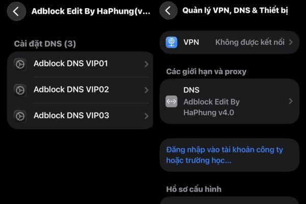 Bạn không cần phải cài đặt thêm ứng dụng hay sử dụng VPN. Thay vào đó, chỉ cần cài đặt một cấu hình trực tiếp trên thiết bị, giúp lọc bỏ các tên miền quảng cáo trước khi chúng hiển thị trên màn hình.