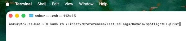 sudo rm /Library/Preferences/FeatureFlags/Domain/SpotlightUI.plist