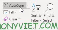 - Nhấn tổ hợp phím Alt + = hoặc chọn AutoSum trên tab Home.