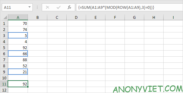 - Tính tổng hàng thứ n: Sử dụng công thức SUM, MOD và ROW để tính tổng mỗi hàng thứ n.
