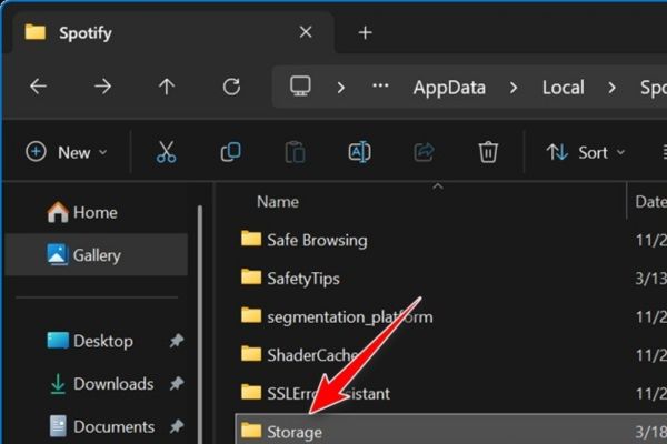 - Mở thư mục Storage và xóa các tệp bên trong.