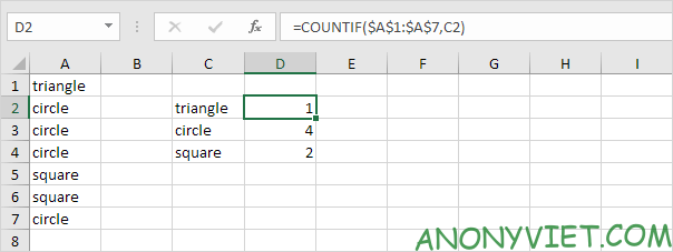 Để thực hiện, bạn cần sử dụng hàm COUNTIF để đếm số lần xuất hiện của mỗi từ. Tuy nhiên, để tìm từ xuất hiện nhiều nhất, ta cần một công thức cụ thể.