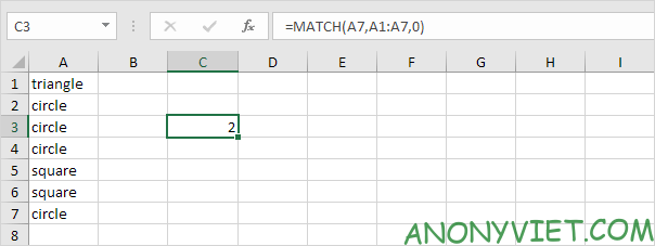 1. Sử dụng hàm MATCH để tìm vị trí của một giá trị trong phạm vi.