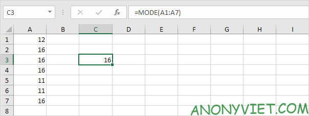 4. Cuối cùng, dùng hàm INDEX để trả về từ xuất hiện nhiều nhất trong phạm vi đã xác định.