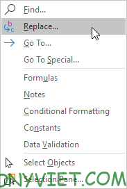 Excel cũng cung cấp tính năng Find & Replace để tìm kiếm và thay thế văn bản nhanh chóng. Bạn chỉ cần chọn phạm vi ô, sau đó vào tab Home, chọn Find & Select, và nhấn Replace để thực hiện thay thế văn bản trong toàn bộ phạm vi đã chọn.