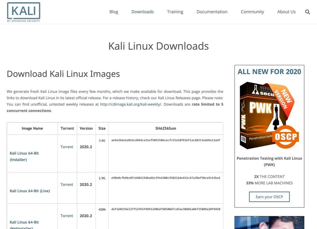 Bạn có thể tải xuống nhiều phiên bản khác nhau của Kali Linux từ trang chính thức. Các phiên bản bao gồm Installer, NetInstaller, Live, và phiên bản dành cho máy ảo.