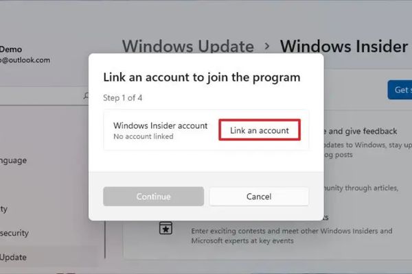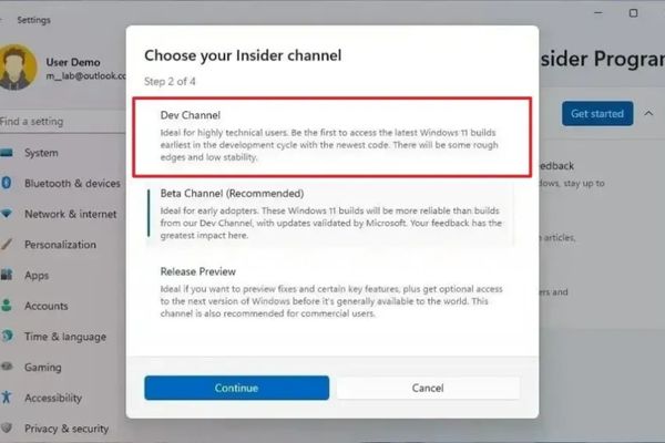 • Nhấn Get started, liên kết tài khoản Microsoft, chọn Dev Channel và khởi động lại.