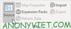 Bước 2: Mở file Excel. Chọn tab Developer, sau đó nhấn Source để mở bảng XML Source.