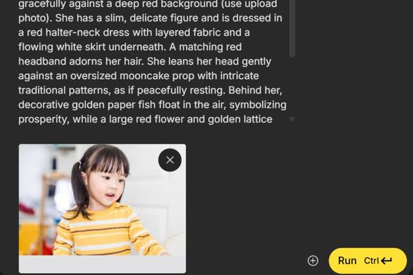 Bước 3: Tải ảnh của bé lên và sử dụng câu lệnh gợi ý (prompt) để AI xử lý. Kết quả sẽ là bức ảnh Trung Thu độc đáo và nghệ thuật.