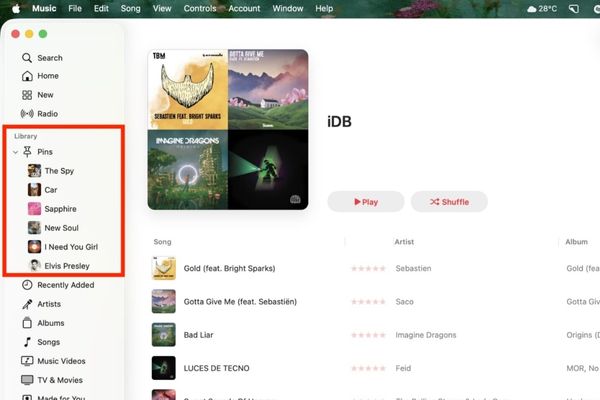 Trên Mac và Apple TV: Một danh mục “Đã ghim” (Pins) sẽ được tạo và hiển thị trong thanh bên trái của Thư viện.