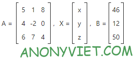 Hệ phương trình có thể được biểu diễn dưới dạng AX = B, trong đó A là ma trận hệ số, X là ma trận biến và B là ma trận kết quả.
