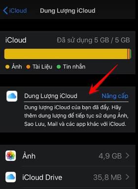 Bước 3: Nhấn vào Dung lượng iCloud để xem gói hiện tại.