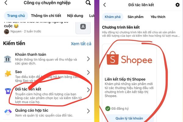 Chỉ các tài khoản Facebook đã kích hoạt chế độ chuyên nghiệp (Professional Mode) mới có thể kết nối với Shopee Affiliate. Chế độ này cung cấp các công cụ dành cho nhà sáng tạo, bao gồm mục Đối tác liên kết, giúp bạn thực hiện liên kết dễ dàng.