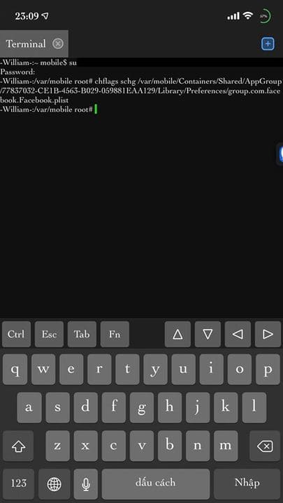 chflags schg /var/mobile/Containers/Shared/AppGroup/77837032-CE1B-4563-B029-059881EAA129/Library/Preferences/group.com.facebook.Facebook.plist