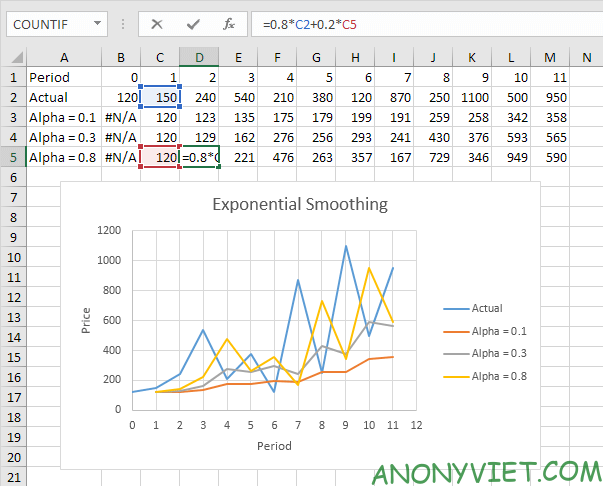 HomePhân Tích Dữ LiệuHướng dẫn làm mịn đồ thị theo cấp số nhân trong Excel