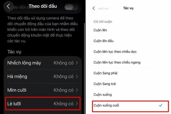 - Chọn mục Cử chỉ đầu và kích hoạt tính năng này.