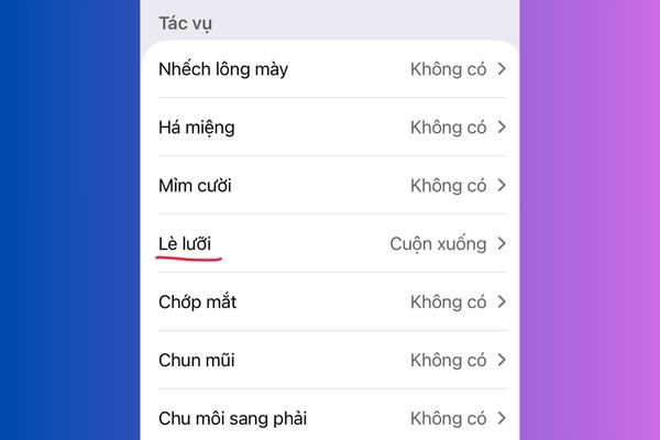 - Chọn cử chỉ Lè lưỡi trong danh sách.