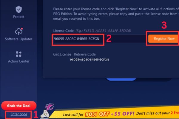 Bước 3: Nhập mã bản quyền 96095-A803C-84B65-3CFGN vào ô trống và nhấn Register Now.