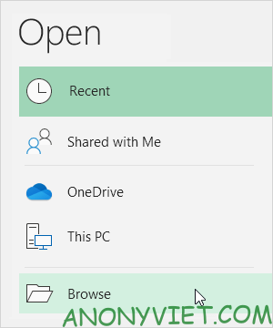 - Trên tab File, chọn Open.