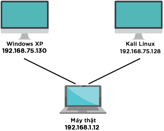 Trong lab này, bạn cần hai máy ảo: một là Windows XP và một là Kali Linux. Đảm bảo rằng cả hai máy ảo đều sử dụng kiểu kết nối NAT với subnet IP 192.168.75.0. Kali Linux sẽ thực hiện quét Windows XP để thử nghiệm phần mềm network scanner.