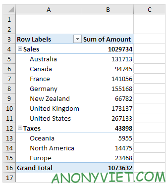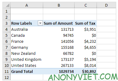 - Nhấn vào mục bạn muốn trong trường của bảng Pivot Table.