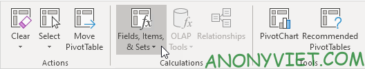- Trên tab Analyze, chọn Fields, Items & Sets.