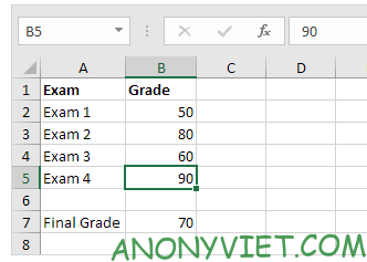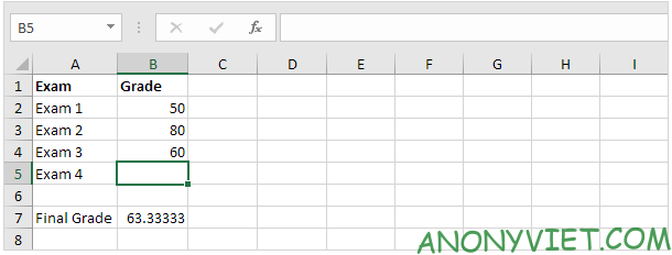 - Nhập công thức vào ô B7 để tính điểm cuối.