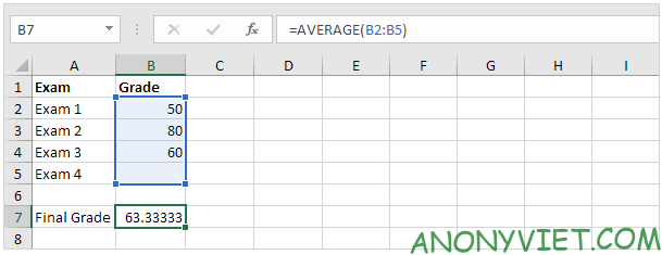 - Nhập công thức vào ô B7 để tính điểm cuối.