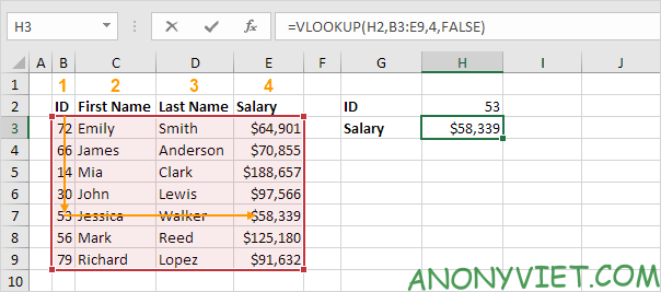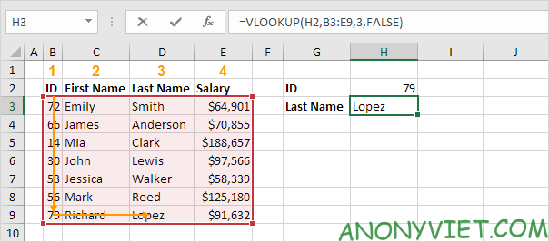 Cách sử dụng hàm Vlookup