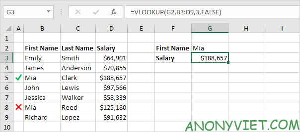 Để tìm giá trị chính xác, bạn cần đặt tham số cuối cùng là FALSE. Nếu không tìm thấy, hàm sẽ trả về lỗi #N/A.