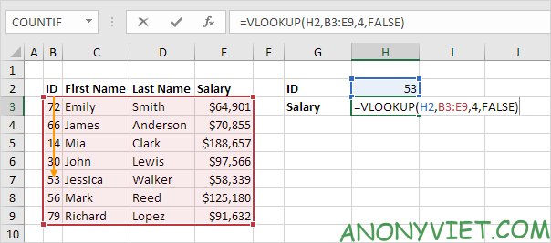 Cách sử dụng hàm Vlookup