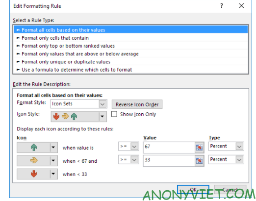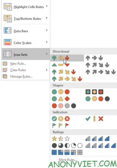 Bạn có thể sử dụng từ 3 đến 5 biểu tượng trong Icon Sets, tùy thuộc vào kiểu biểu tượng mà bạn chọn.