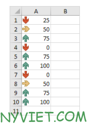 Sau khi hoàn tất, Excel sẽ tự động hiển thị các biểu tượng tương ứng với giá trị trong các ô, giúp bạn dễ dàng phân tích dữ liệu hơn.