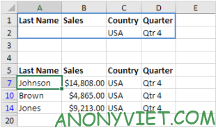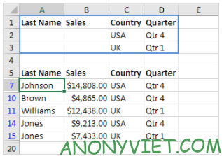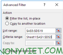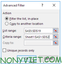 Vùng ‘Criteria range’ cần bao gồm tiêu đề cột tương ứng với dữ liệu bạn muốn lọc.
