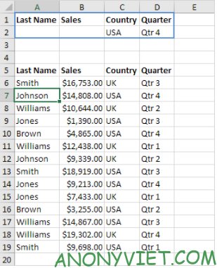 Vùng ‘Criteria range’ cần bao gồm tiêu đề cột tương ứng với dữ liệu bạn muốn lọc.