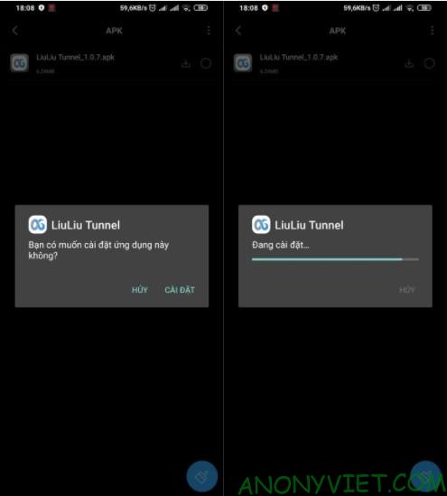 Bước 2: Cài đặt ứng dụng LiuLiu Tunnel trên điện thoại Android.