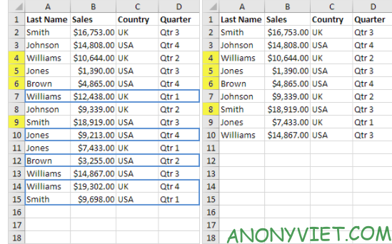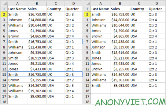 Kết quả là Excel sẽ loại bỏ tất cả các hàng giống nhau.
