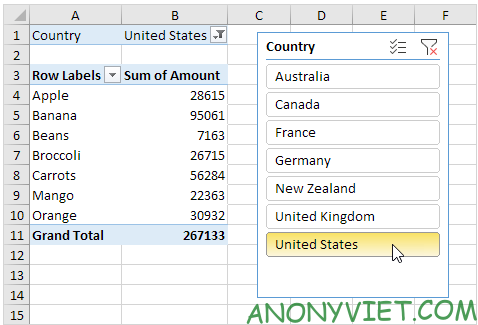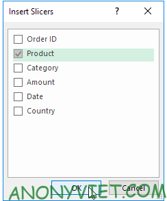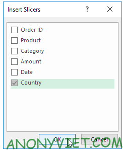 Cách thêm Slicer vào bảng Pivot Table