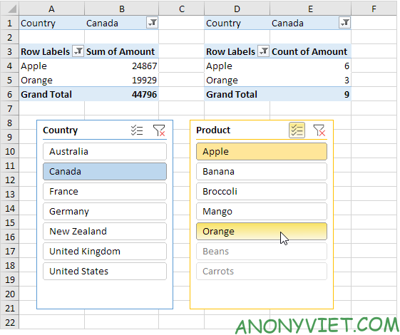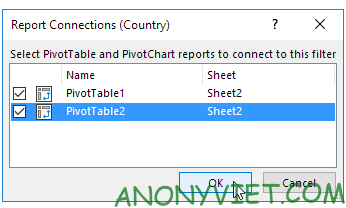 Kết nối nhiều Slicers với bảng Pivot Table