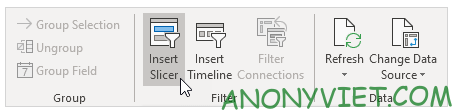 • Chọn tab Analyze và nhấn Insert Slicer.