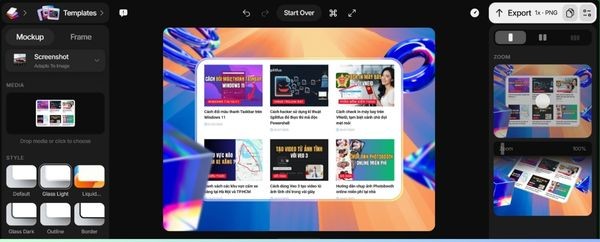 Giao diện của Shots.so được thiết kế trực quan, giúp bạn dễ dàng làm quen và sử dụng. Thanh công cụ bên trái hỗ trợ tùy chỉnh phong cách, trong khi khu vực bên phải giúp điều chỉnh bố cục và xuất ảnh. Bạn chỉ cần truy cập https://shots.so/ để bắt đầu.