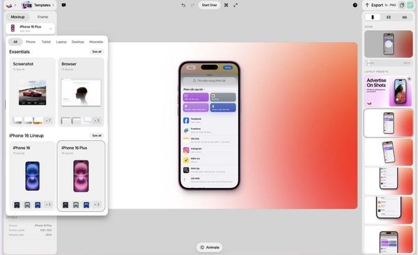 Shots.so là nền tảng web giúp bạn tạo ảnh mockup online chuyên nghiệp, nhanh chóng và hoàn toàn miễn phí. Dù bạn là nhà thiết kế, lập trình viên hay nhà sáng tạo nội dung, công cụ này đều đáp ứng tốt nhu cầu trình bày sản phẩm và thiết kế một cách trực quan, thu hút. Bạn có thể xem thêm tại Tin tức 360.