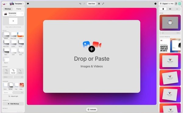 Thay vì sử dụng các phần mềm phức tạp, Shots.so cho phép biến ảnh chụp màn hình đơn giản thành mockup tinh tế chỉ với vài thao tác đơn giản.