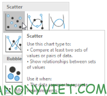 Có, bạn chỉ cần chọn dữ liệu, vào tab Chèn, chọn biểu tượng Phân tán và chọn tùy chọn Scatter.