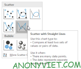 Bước 3: Chọn tùy chọn Scatter with Straight Lines (Biểu đồ phân tán với đường thẳng).