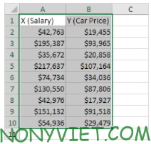 Có, bạn chỉ cần chọn dữ liệu, vào tab Chèn, chọn biểu tượng Phân tán và chọn tùy chọn Scatter.