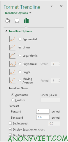 Các loại đường xu hướng trong Excel